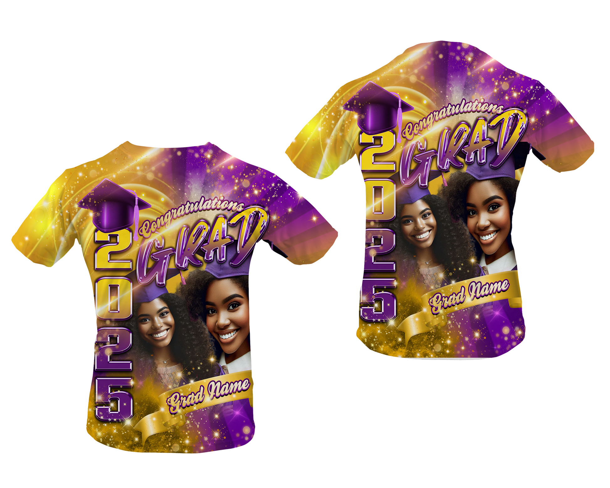 Celebrate your graduate in style with this customized Class of 2025 graduation T-shirt! Featuring a vibrant Sublimation print, this tee is made from 100% polyester for a lightweight, breathable, and comfortable fit—perfect for the big day.