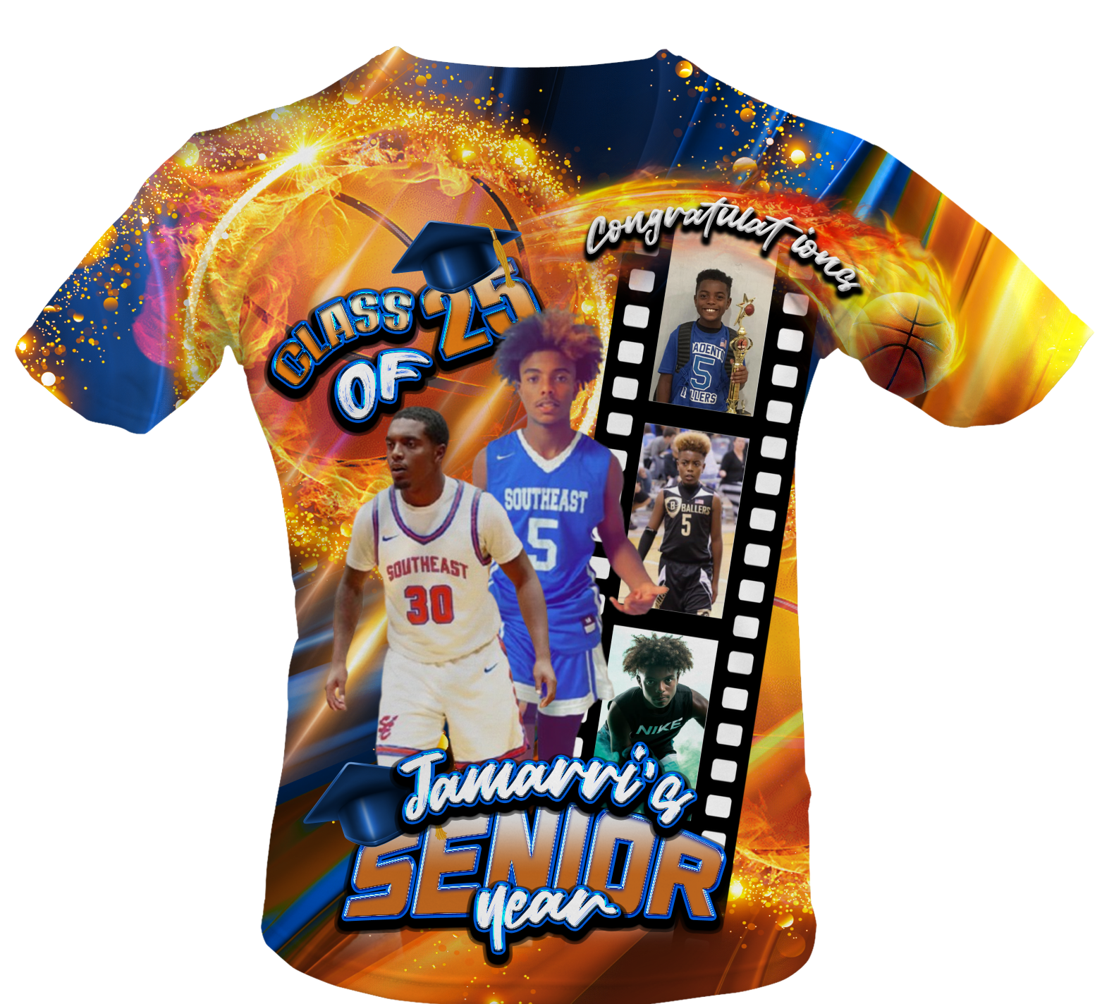 Custom Senior Graduation Basketball T-Shirt – Class of 2025 | Full-Print Personalized Tee